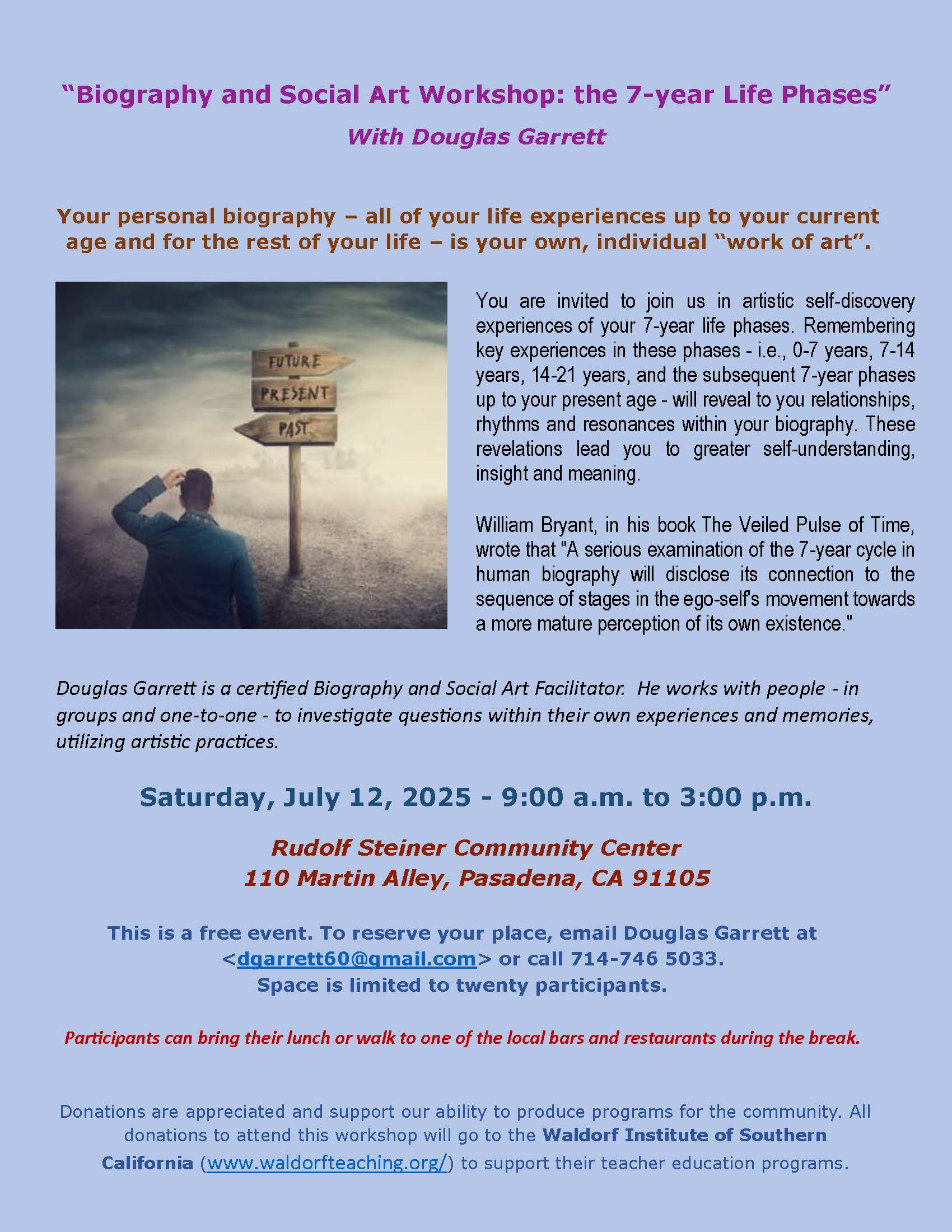 For More Information on individual events, please contact programs@anthroposophyla.org.